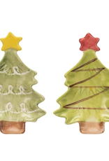 Hand-Painted Stoneware Christmas Tree Dish w/ Star, 4 Styles 4"L x 2-3/4"W